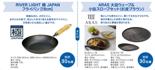 RIVER LIGHT 極 JAPAN フライパン【18cm】 または ARAS 大皿ウェーブ&小皿スロープセット