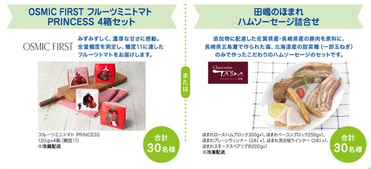 OSMIC FIRST フルーツミニトマト PRINCESS 4箱セット または 田嶋のほまれ ハムソーセージ詰合せ