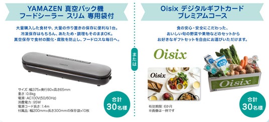 YAMAZEN 真空パック機 フードシーラー スリム 専用袋付 または Oisix デジタルギフトカード プレミアムコース