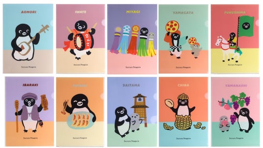 各地域の名所・文化・名産品などをモチーフに、Suicaのペンギンならではの可愛らしいタッチでデザインしたA4サイズのクリアファイルです。書類整理に使いやすいA4サイズで、学校やオフィス、ご自宅など幅広いシーンでご使用いただけます。
