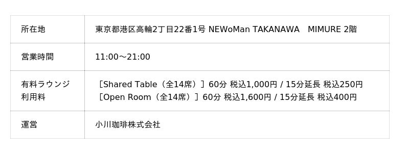 なお、「OGAWA COFFEE LABORATORY 高輪」は、2026年3月28日(土)に開業した「ニュウマン高輪 MIMURE(ミムレ)」の2階 “100年先の都心のコミュニティビレッジ”をテーマにしたコンセプトエリアにオープンした店舗です。