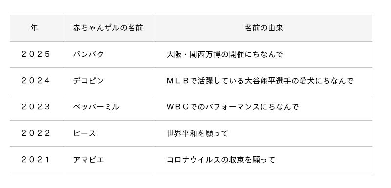 〈参考〉近年の第1号赤ちゃんザルの名前と由来
