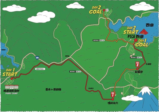 1日目は精進湖周辺をスタートに、樹海の森を抜け、鳴沢氷穴での洞窟探検、紅葉台への軽登山なども盛り込まれた、自然の楽しさを再発見できるルート設計。2日目は“PICA富士西湖”から“西湖いやしの里根場”を目指す、のんびりと歩けるリラックスしたコース。