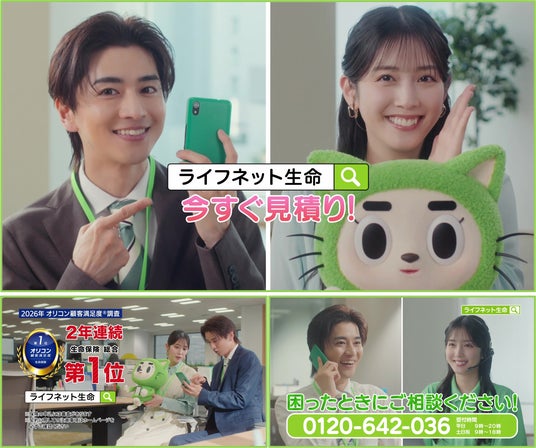 ライフネット生命保険株式会社(本社:東京都千代田区、代表取締役社長:横澤淳平)は、2024年から2年目となる松田るかさんと飯島寛騎さんが出演をするライフネット生命のCMシリーズの最新作が、2026年4月に公開となりましたことをお知らせします。松田さんと飯島さんが職場の同僚という設定のCMは、CM総合研究所が主催する「BRAND OF THE YEAR 2025」において、「消費者を動かしたCM展開」を受賞するほどの人気を博しています。今回は高い好感度を獲得している「10秒見積り篇」の新作を含め、新たな4篇がお目見えです。
