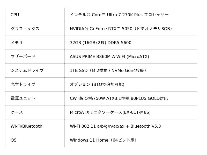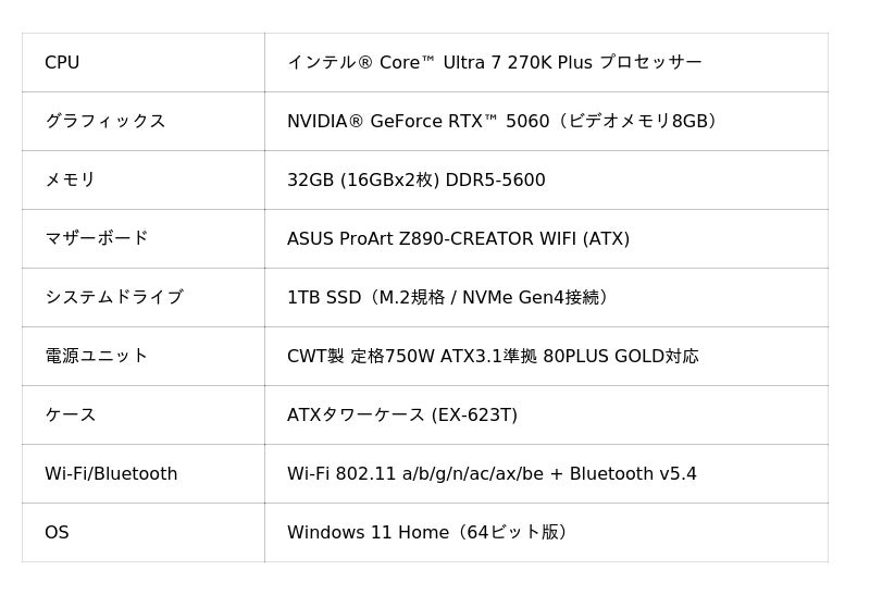 最新の「インテル(R) Core(TM) Ultra 7 270K Plus」を搭載