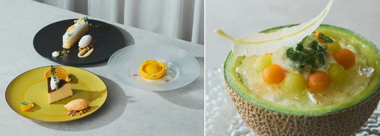 季節ごとの美しさをスイーツに映し出し、訪れるたびに新たな感動をお届けしている「TEA AND BAR」。今年の初夏は、太陽を感じるマンゴーとパッションフルーツの「マンゴー・フルール」、はちみつとレモンで爽やかな味わいの「リーニュ・ド・シトロン・エ・テ」、そしてオレンジがアクセントの濃厚でとろける「バスクチーズケーキ」をご用意しました。さらに、瑞々しいメロンを器にし、旬の美味しさを凝縮させたパルフェ「リュクス・メロン・ボウル」が1日10食限定で登場します。