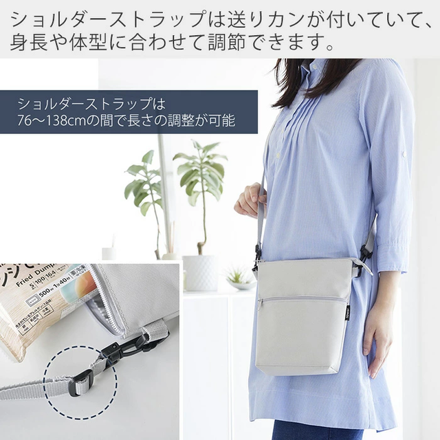 取り外し可能なショルダーストラップ付きで、長さが76~138cmまで調節可能。