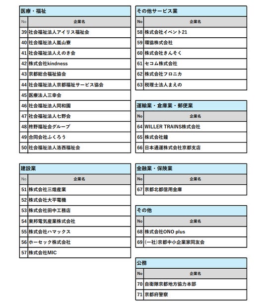 働きやすい職場づくりに取り組んでいる京都企業 70社