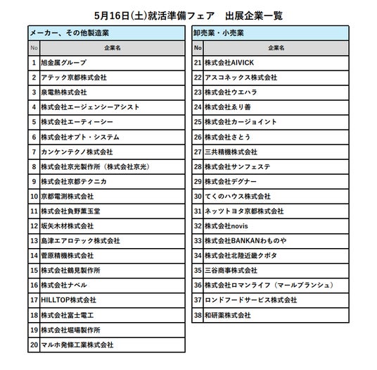 URL:https://www.kyoto-is.jp/event/jobfair/r080516/