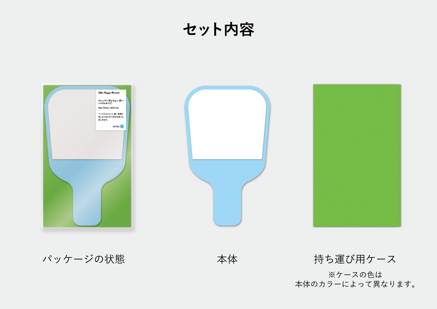季節に関わらず、外出先はもちろんオフィスや自宅で不意に暑さを感じた時、さっと取り出して使える「ペーパーディフューザー(パドルタイプ)」は、あおぐ風の涼しさと一緒に好きな香りも楽しめる、これからの季節にぴったりなアイテムです。