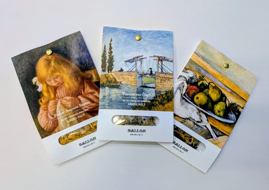 名画の香りをイメージしたバスソルトで、お風呂でも作品の世界に浸かれる。・商品名:アロマソルト・販売価格:880円(税込)