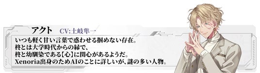 『Xenoria(ゼノリア)』は世界初の完全AI管理都市として栄えている街。AIによって管理されることで、自分に合った最高の環境で生活できることから近年人気の都市になってきている。