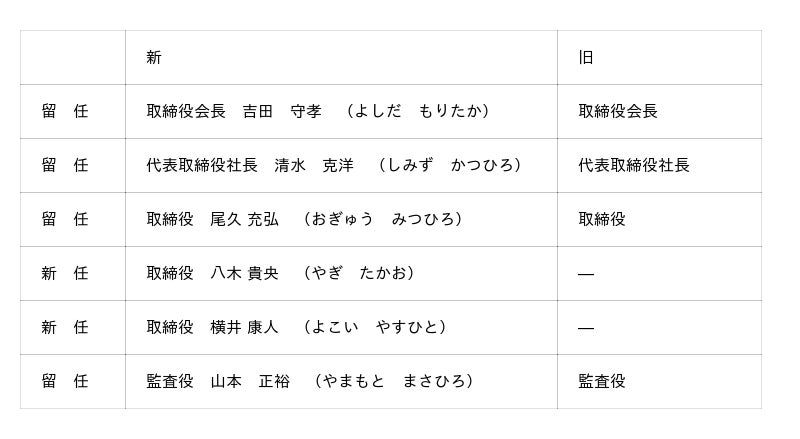 今回の株主総会は、弊社取締役の任期満了タイミングとなり、上記のとおり取締役の変更がございます。