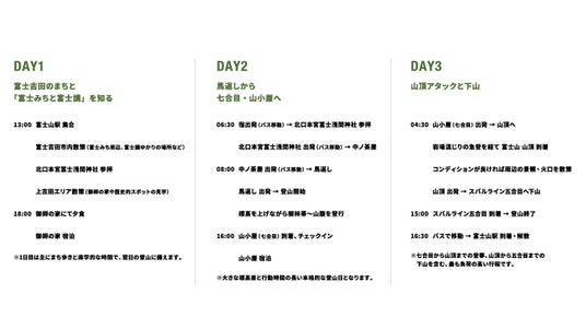 かつて“神の宿る場所”として富士山を信仰する多くの修験者たちが、富士山頂を目指して辿った道を“富士みち”と言います。山梨県大月市から始まり、現在の吉田口登山道を通じて富士山頂まで繋がる歴史的な街道及び登山道です。本キャンペーンでは“富士みち”の一部となる富士吉田市から始まる吉田口登山道を0合目から山頂を目指す特別な登山ツアー体験が抽選で当たるキャンペーンとなります。普段とは違う、古くも新しい富士山を体感して頂ける旅へとご案内致します。