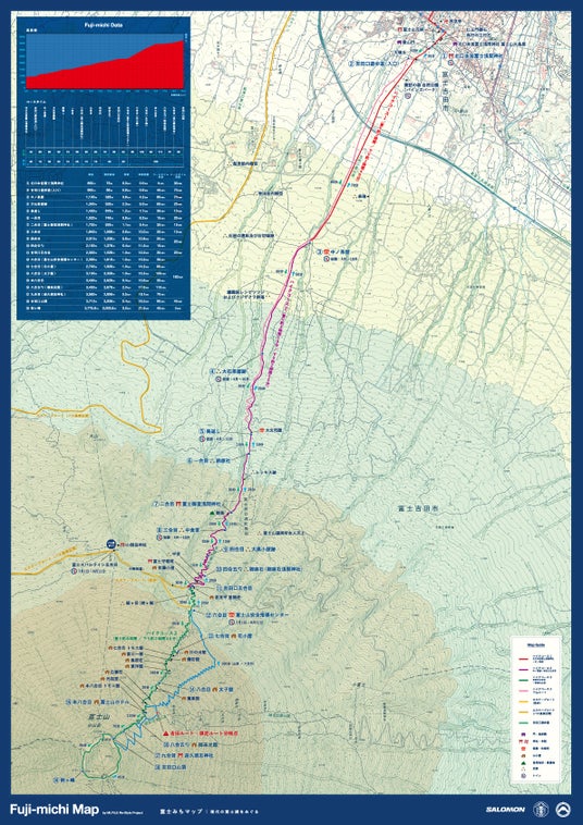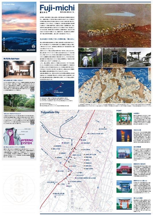 ■“富士みち”MAPができるまで江戸時代から富士信仰の道として多くの修験者たちが辿った道“富士みち”にフォーカスし、その一部となる富士吉田市内から始まる吉田口登山道のオリジナルマップを富士吉田市監修の基に作成致します。当コンテンツでは、監修として入っている富士吉田市とサロモンとの取り組みやオリジナルマップを制作するに至った意図など制作の裏側を紹介するコンテンツとなっております。