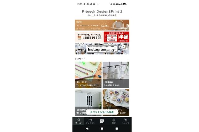 実際に使うには、まずスマホアプリ「P-touch Design&Print 2」をダウンロード。附属のテープカセットを本体にセットし、スマホとぺアリングすれば準備OKです。