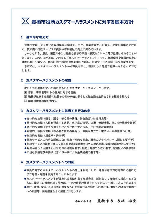 豊橋市役所カスタマーハラスメントに対する基本方針