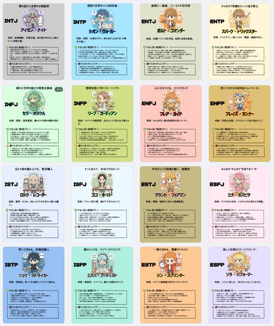 Mira Studyでは、性格診断をもとにした独自の「MST16(ミラスタイプ16)」を提供します。