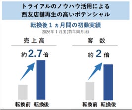 その結果、転換後わずか1カ月の実績(2026年1月度/前年同月比)において、売上高は約2.7倍、客数は約2倍と大幅な伸長を達成しています。