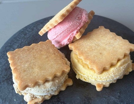 「THREE STARS」クッキーアイスサンド(1個)各990円 ※すべての動物性食品を含まないこと。 沖縄素材の味がしっかり濃いところが魅力。