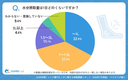 その後「~1L」(32.8%)、「1.5~2L」(15.1%)、「わからない・意識していない」(9.6%)という回答が続きました。