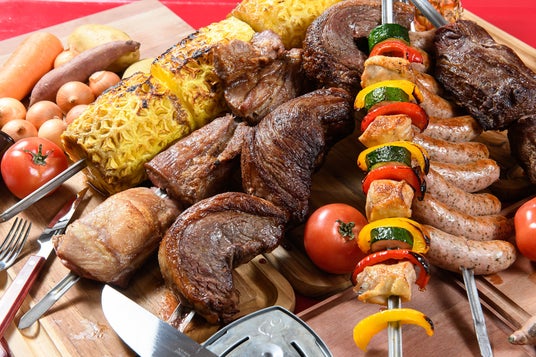 ■ 夕食:本格シュラスコ料理「Sul(スー)」 大串に刺した塊肉を目の前でダイナミックに切り分けるライブ感に加え、ブラジル人スタッフ直伝の「本場の家庭の味」を再現したサイドメニューが自慢です。18種のシュラスコが楽しめる「サンパウロコース」を提供いたします。
