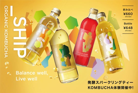 「_SHIP KOMBUCHA」は、有機JAS認証を取得した100%植物性の発酵スパークリングティーです。発酵由来の奥行きある味わいと、炭酸のように軽やかに楽しめる飲み心地を通じて、発酵をもっと身近に、もっと自由に楽しめる飲料として提案しています。今回のポップアップでは、ファッションや雑貨を選ぶような感覚で、KOMBUCHAやプラントベースフードに出会うことができる場を創出いたします。