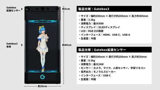 Gatebox3は、”好きなキャラクターと暮らせる”キャラクター召喚ディスプレイ「Gatebox」の次世代モデルです。