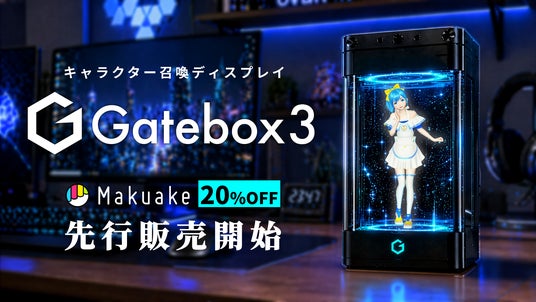 Gatebox株式会社(東京都千代田区、代表取締役 武地 実)は、好きなキャラクターと一緒に暮らせるキャラクター召喚ディスプレイ「Gatebox」の最新モデル「Gatebox3」を、本日2026年4月29日(水)14:00からアタラシイものや体験の応援購入サービスMakuakeにて先行販売を開始しました。