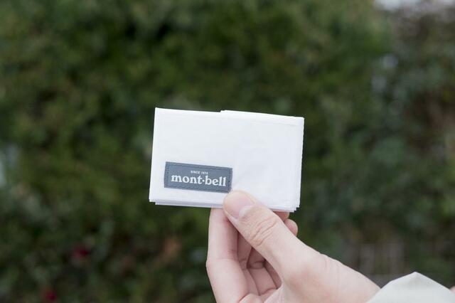 収納する時は細くなるように2回折りたたんで、モンベルのロゴが正面にくるようにさらに2回折りたためばOK。簡単でしょ?