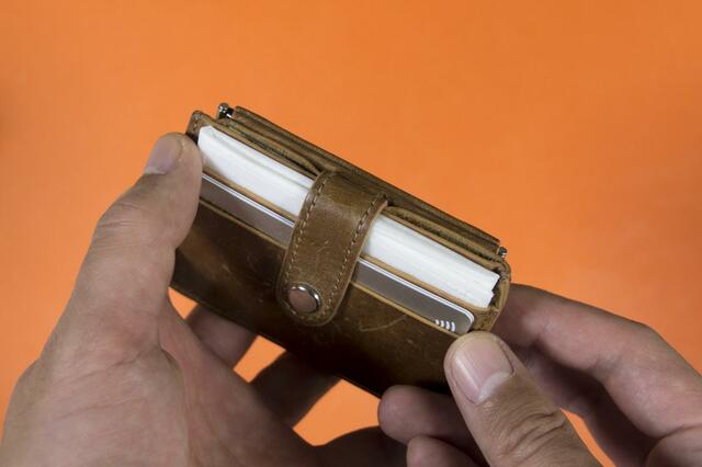 小さな財布でも、カードが3枚ほど収まるポケットがあれば入っちゃいますよ。
