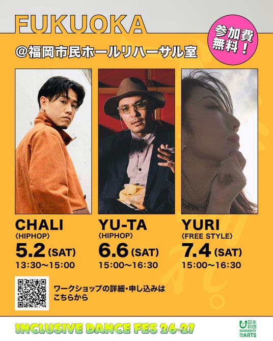2027年1月30日・31日に渋谷で開催される「INCLUSIVE DANCE FES 26-27」の一環として、全国5大都市で行われる無料ワークショップの全講師、全日程のラインナップが発表となりました。