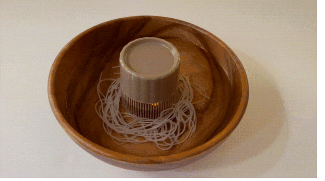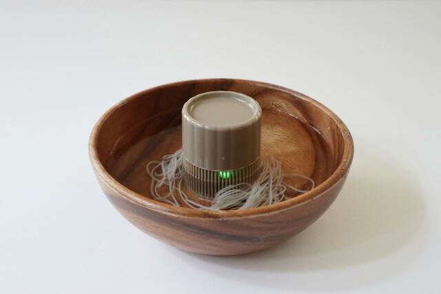 スクリューの回転が水流をつくるのですが、水が多すぎても少なすぎてもうまくまわりません。うつわは直径16~23cmくらいのものが推奨されていて、水位は底から約4cmが目安だそうです。