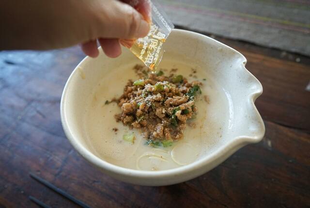豆乳に付属のスープを入れて、ひき肉や野菜を入れれば簡単に豆乳タンタン麺ができあがります。