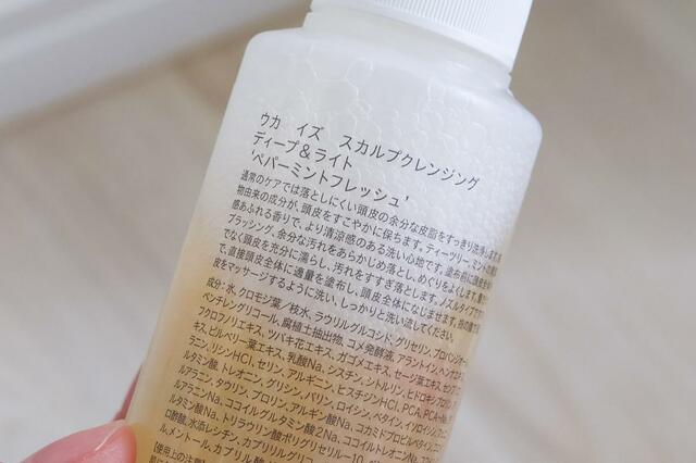 ukaのスカルプクレンジングには、メントールが入っていない「Deep & Light」とメントール特有の冷感な「Deep & Light Peppermint Fresh」があり、わたしがチョイスしたのは後者。