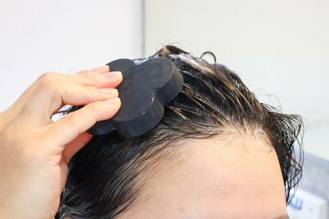 ゴシゴシせずに優しく押し当てるイメージで使うと、頭皮に優しく使えますよ。