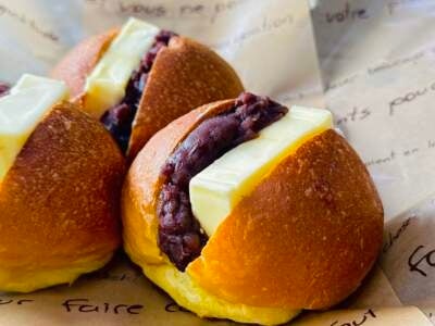 ふっくらと焼き上げられたやわらかなパンに、たっぷりと挟まれた粒あん、そして存在感のある厚切りバター。