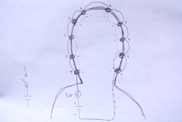 縫い物なんて滅多にやらないので少し時間がかかりましたが、なんとか10個のLEDを縫い付けることができました。
