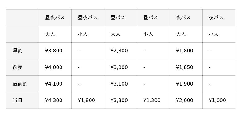 販売期間:4月1日(水) ~ 5月31日(日)■昼パス(早割):¥2,800