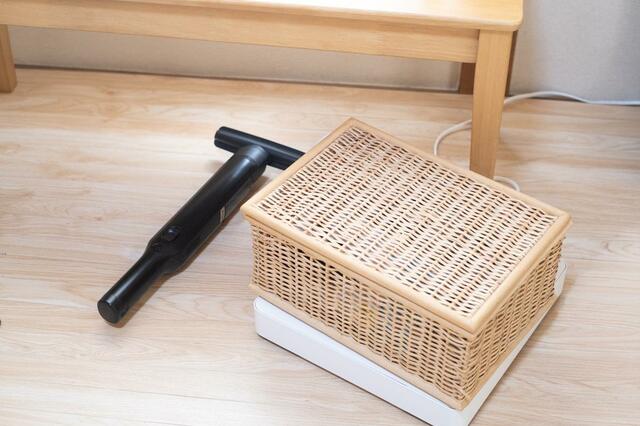 スマホなどの充電器をまとめて入れているケーブルボックスの下に忍ばせるのも便利です。