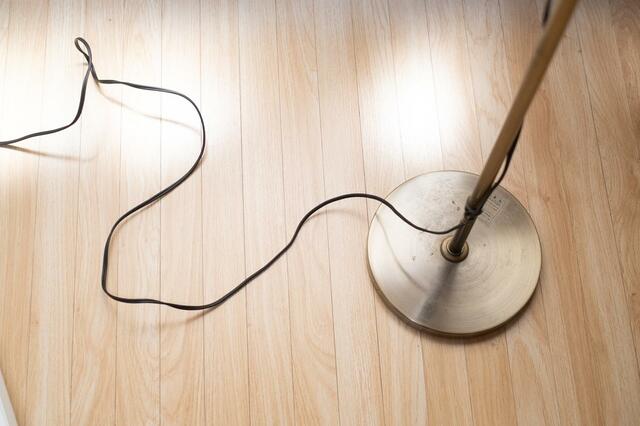 お気に入りのフロアランプの足元のケーブルがびろーんと伸びていて気になっていました。
