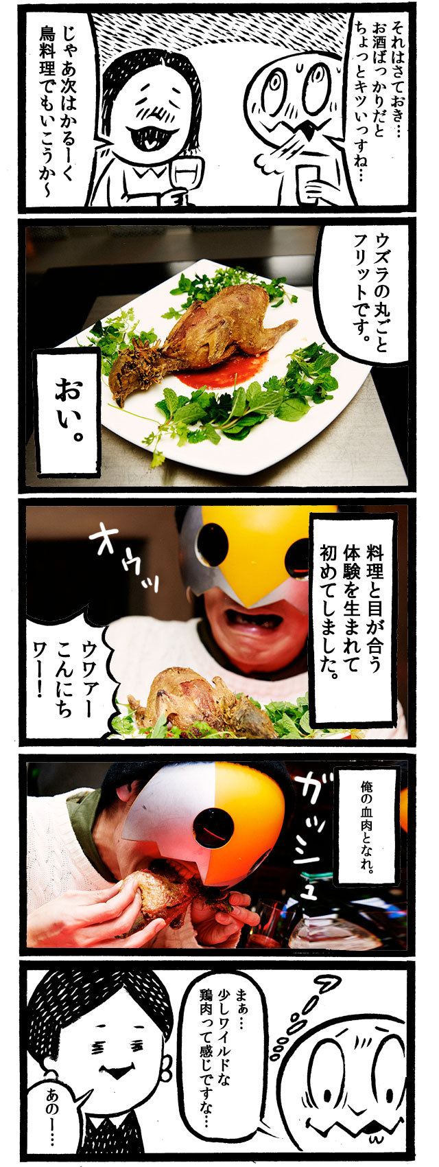 漫画家のカメントツです。今回は切ない思い出話を忘れさせてくれたお酒を求めて、ジビエ料理屋さんへ足を運びました。