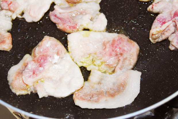 お肉の赤い部分が無くなってきて、肉汁が浮いてきたら、ひっくり返します。