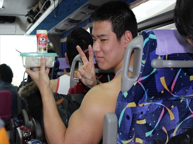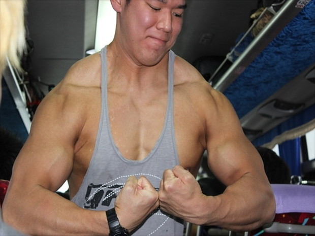 バスの中もマッチョだらけ