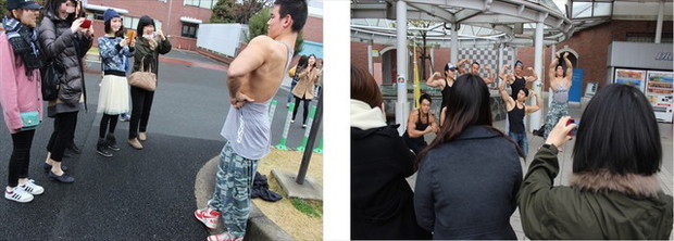参加者は全員女性。友人同士で参加した人もいるが、意外に一人で来ている人も多い。やはり皆さん筋肉が好きらしく、初対面同士でも盛り上がっていた。そして、途中のトイレ休憩では、自然とプチ撮影会が始まる。