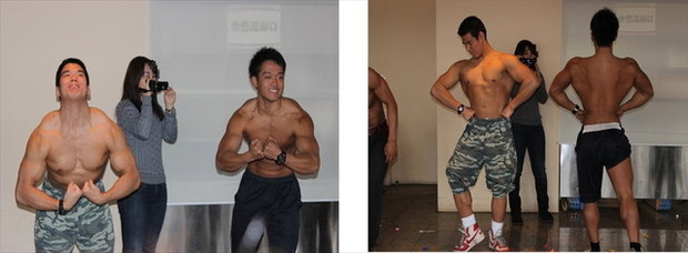 見事正解すると、マッチョがその“部位”をアピールするポーズをとってくれる。