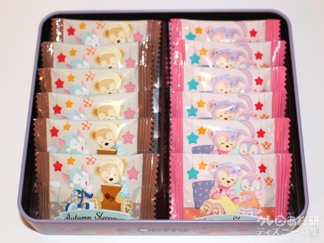 おねむなダッフィーとジェラトーニの袋のホワイト&ミルクが 6個、シェリーメイとステラ・ルーの袋のストロベリー風味&ミルク が6個入っています。