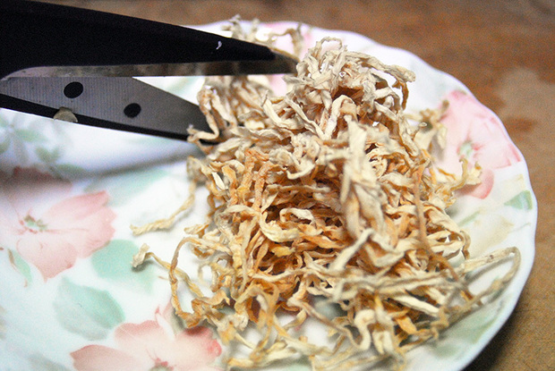 切り干し大根を、キッチンばさみで細かくカットしておきます。