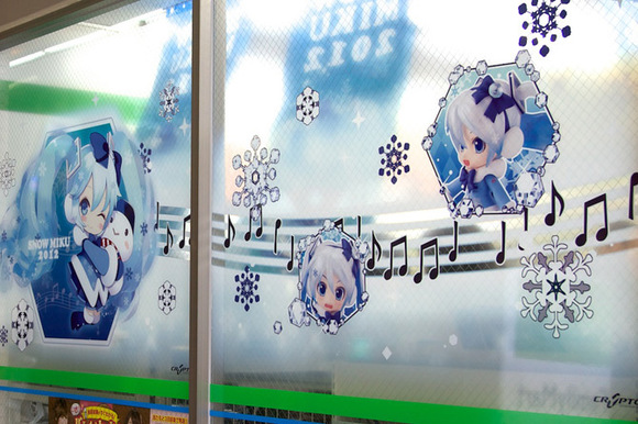 先ほどの地図の中、雪まつり会場をぐるっと囲うようにファミリーマート4店舗がマークされていましたが、実はこの4店舗、雪まつり期間だけ雪ミク仕様にデコレーションされています。限定グッズを販売しているということもあって、ミクさんファンはこの4店舗全てを巡り歩くことになります。