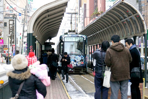こちらも完全に雪ミク仕様。なかなかきれいにデザインされています。沿道からは駅伝の応援よろしくカメラのシャッター音がところどころで。走っているのは1編成のみのようでしたから、前もって調べておかないと出会うのはちょっと難しい感じです。